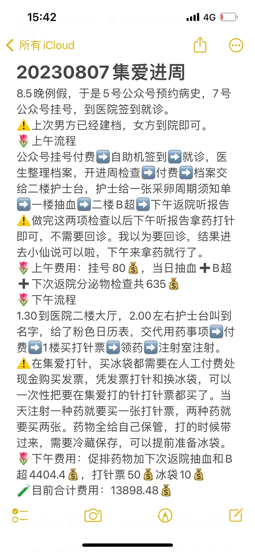 🌷下午费用:促排药物加下次返院抽血和B超4404.4💰,打针票50💰冰袋10💰